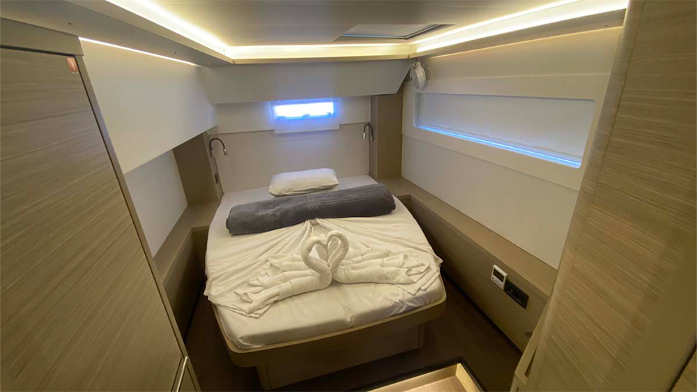 2024 model New Lagoon 46, Fethiye'nin eşsiz koylarında unutulmaz bir tatil deneyimi sunuyor. 5 kabin ve 5 tuvaletiyle geniş ve ferah bir yaşam alanı sağlayan bu 13.99 metrelik catamaran, klima ve ısıtma sistemiyle her mevsim konforu garantiliyor. Flybridge üst güvertesi, panoramik manzaralar eşliğinde dinlenme ve eğlence imkanı sunarken, su yapıcı sistemi ve tam donanımlı fırınıyla denizde ev rahatlığını yaşatıyor. Maksimum 9 kişilik kapasitesiyle arkadaş grubunuz veya aileniz için ideal bir seçim.